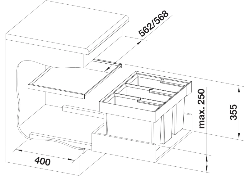 zum Einbau in vorhandene Auszüge (Auszug inkl. Front vom Möbelhersteller benötigt) Für 60cm breite Unterschränke inkl. Systemabdeckung (Ablageboden im Korpus)
